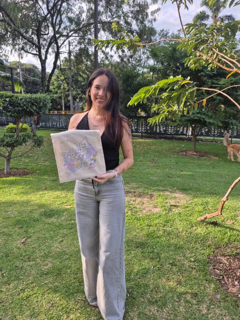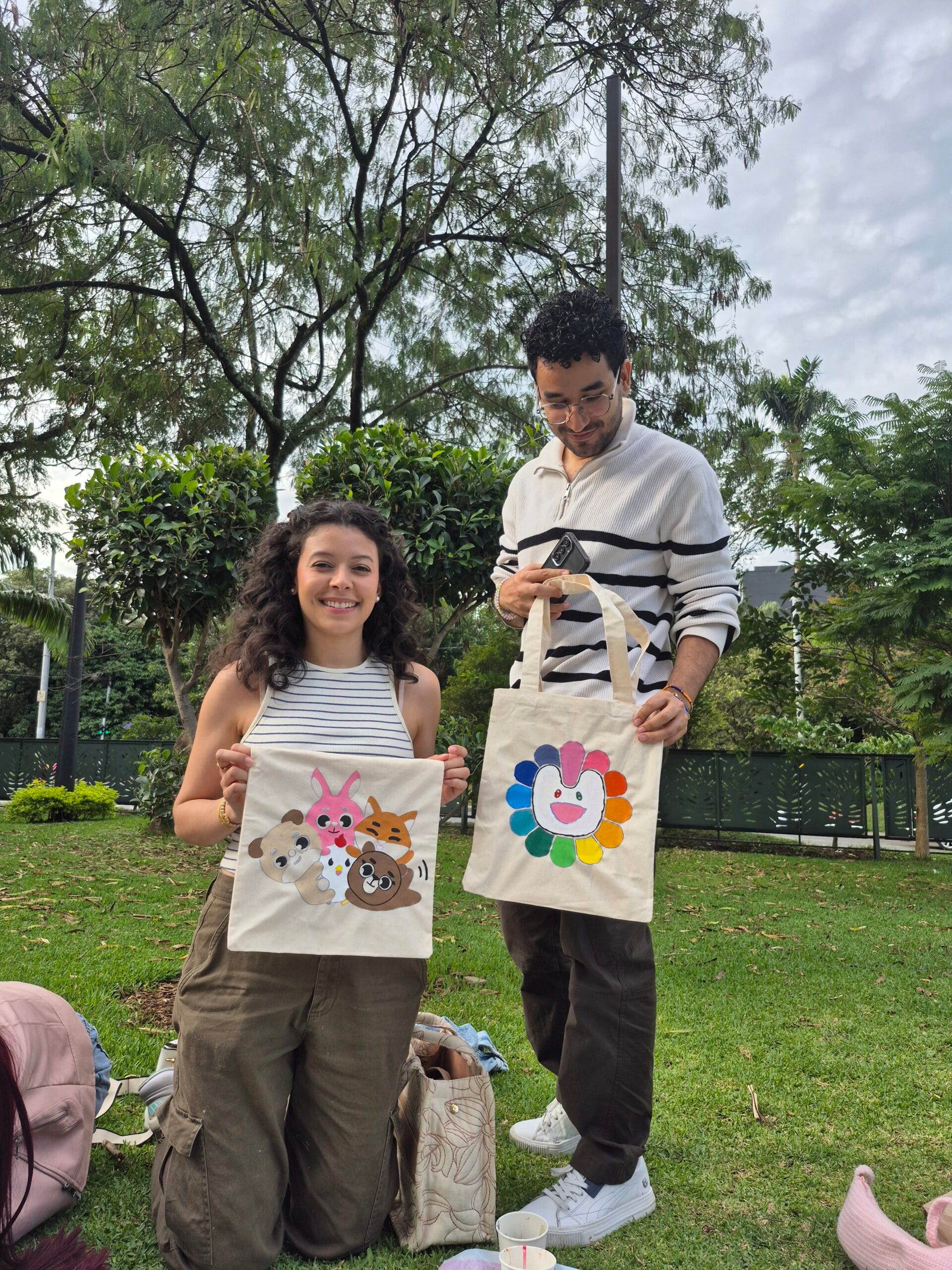 Cada uno recibió su totebag con la plantilla del diseño personalizado que había elegido previamente, junto con todas las herramientas, materiales y guía necesarias para darle color y vida a su idea. 🎨👝